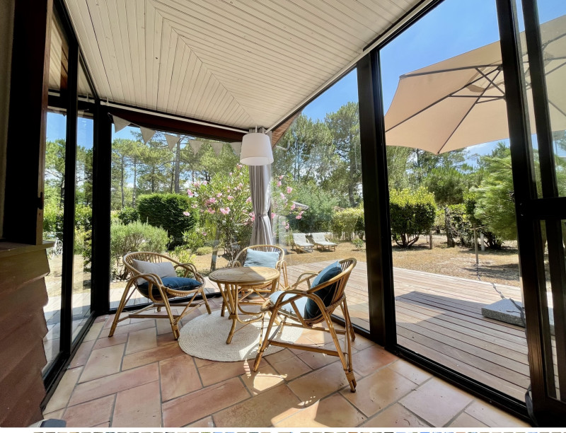 Überdachte Terrasse mit Tisch und 6 Stühlen