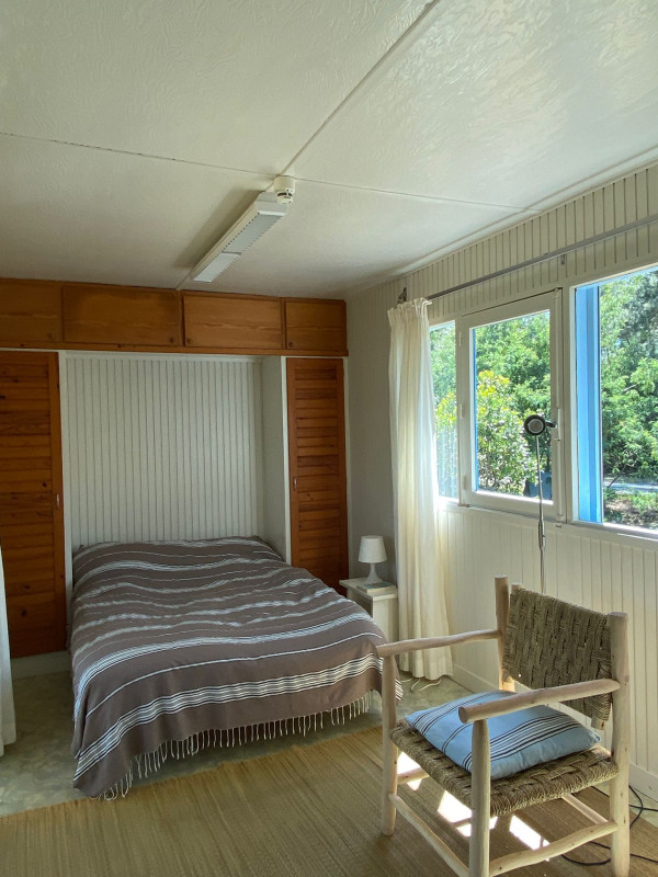 Bungalow à louer en Gascogne 18 : pour 2 - 4 personnes. Cuisine, salle de bain avec douche intérieure, salon avec table à manger, canapé et deuxième lit double, grande chambre avec baie vitrée, qui donne vue sur les pins ainsi qu'un WC séparé, débarras avec machine à laver, véranda et terrasse, grand jardin soigné avec douche de jardin, oreillers, couettes et couvertures ainsi que trois vélos disponibles, emplacment est très calme à dix minutes de la plage 2 et du centre commerciale; les draps, les serviettes de cuisine et de bain ne sont pas fournis. Coûts concernant la caution, le loyer et le forfait de nettoyage sur demande, contact par e-mail :