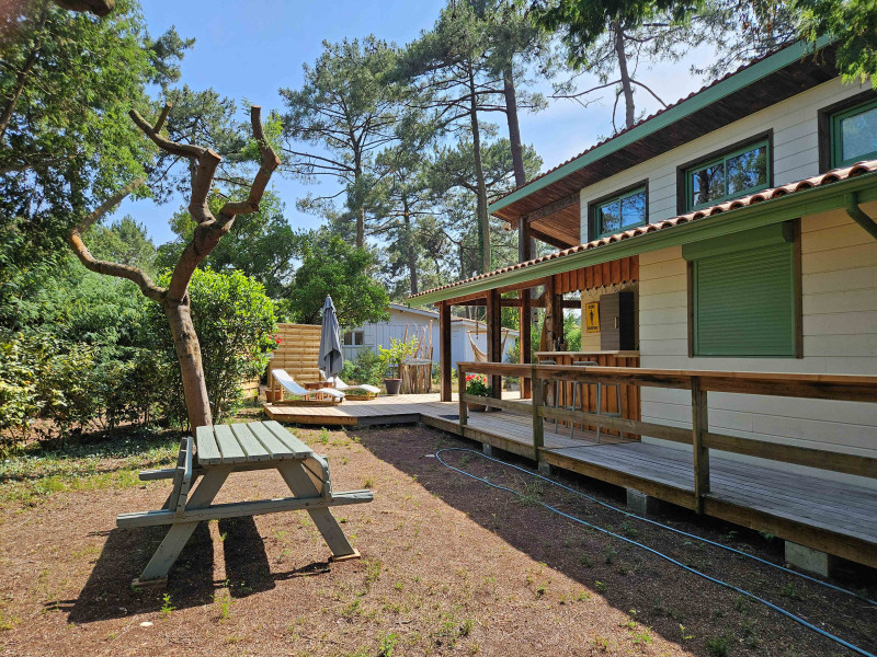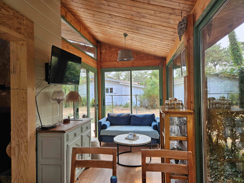 Bénéficiez d'un espace lumineux et rénové sur un terrain arboré de 500 m². Ce bungalow est situé en campagne, au calme absolu et à proximité de toutes les commodités : commerces, plages et activités sportives à proximité des Grands Axes Routiers.