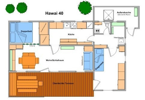 - Platz für bis zu 6 Personen im Schlafraum, Wohnraum und separatem Anbau (Stockbett)