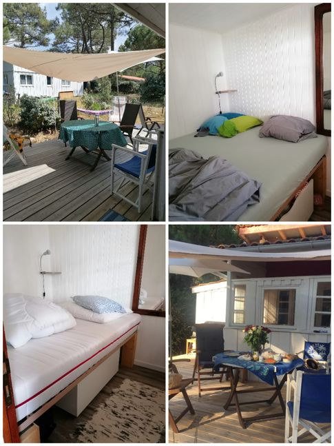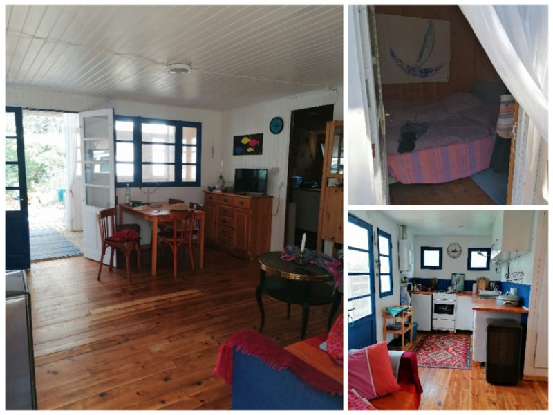 Zu vermieten: Charmanter kleiner Bungalow in ruhiger Lage, max. 4 Personen (2 Schlafzimmer, jeweils ein Doppelbett 1,40 m), Strom über PV, Badezimmer mit Waschbecken und Toilette, Außendusche, Küche komplett eingerichtet, Kühlschrank mit Strom und Gas, große teiweise überdachte Terrasse, 4 Fahrräder stehen zur Verfügung.